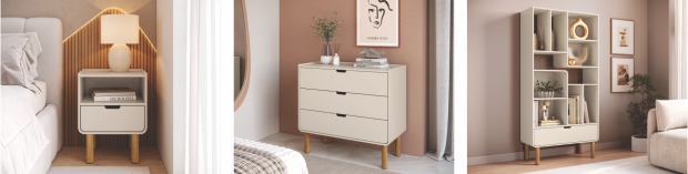 Na Linha Aura, o off-white reforça uma proposta alinhada ao momento atual do design: mobiliário equilibrado, visualmente leve e preparado para composições versáteis.